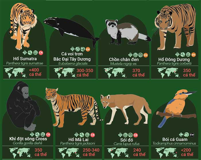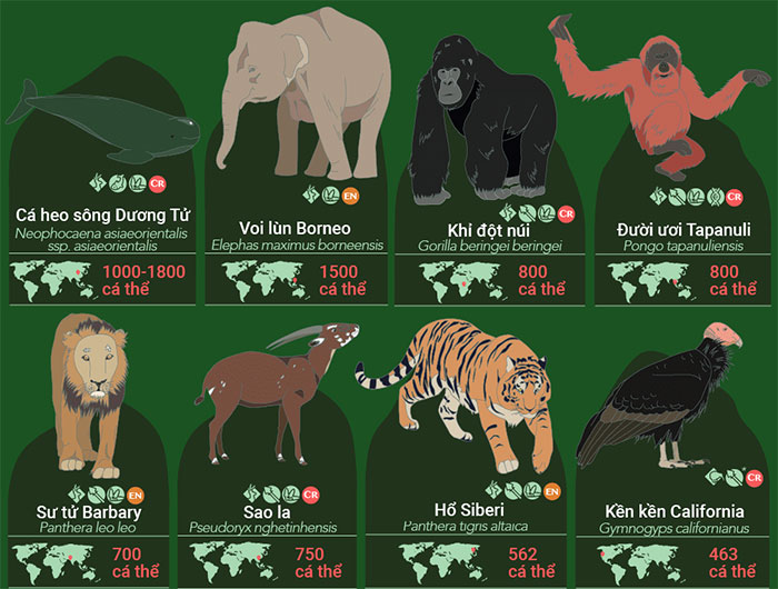 32 loài động vật sắp tuyệt chủng, 9 trong số đó chỉ còn dưới 100 cá thể