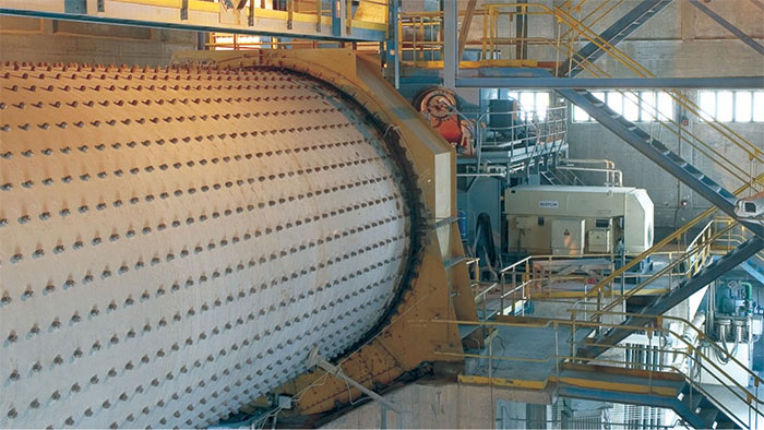 Máy nghiền bi khi nhận được vật liệu qua trục xoắn ốc vào kho thứ nhất của máy nghiền bi, trong kho này có tấm lót côn dạng bậc thang hoặc tấm lót côn gợn sóng, bên trong có các bi thép với đủ kích cỡ khác nhau. (Ảnh: The Nile)